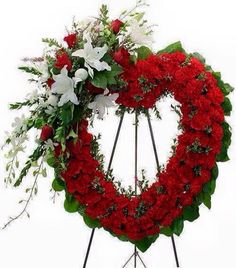 Red & white heart Funeral flowers
